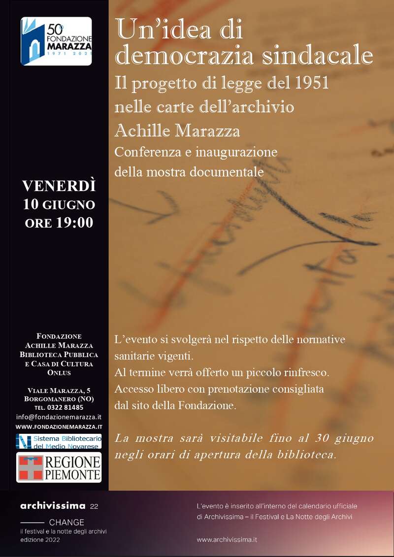 Nella Notte degli Archivi 2022 verrà dato risalto al Fondo archivistico del nostro Fondatore, l'onorevole Achille Marazza (Borgomanero, 1894 - Suna di Verbania, 1967). Marazza fu avvocato, uomo politico, amministratore di grandi aziende pubbliche e di enti culturali di importanza nazionale. Iscrittosi al Partito Popolare nel 1920, antifascista, fu dirigente della Democrazia Cristiana nella clandestinità e membro del CLN Alta Italia. Partecipò con Cadorna, Pertini e Lombardi allo storico incontro all'arcivescovado di Milano nel quale venne trattata la resa di Mussolini. Il suo ruolo durante la Resistenza lo mette al centro del cambiamento più radicale della storia contemporanea italiana, la transizione dal fascismo alla democrazia.