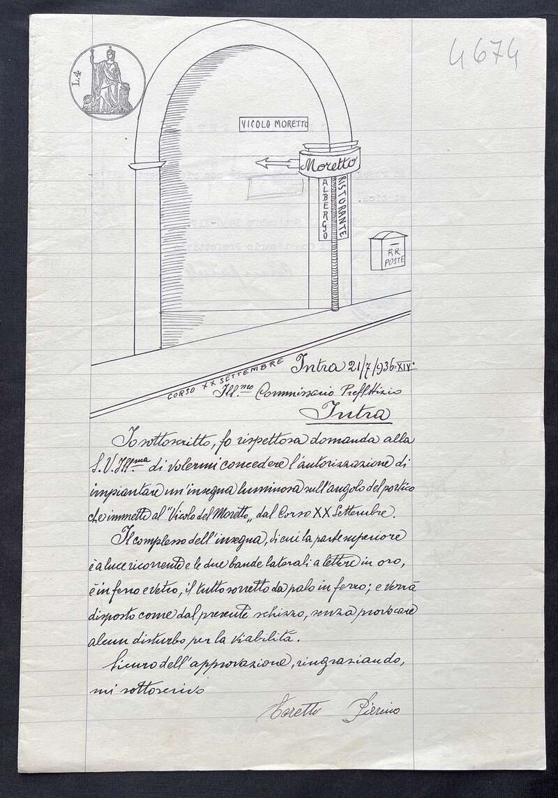 Richiesta di posizionamento di insegna luminosa “a luce ricorrente, e le due bande laterali a lettere in oro”.