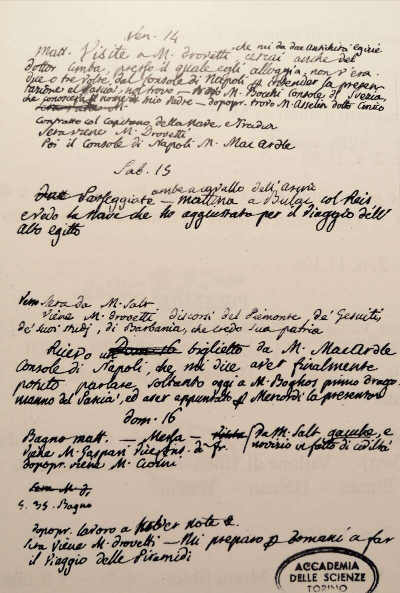 Arrivato in Monferrato, dopo aver trascorso quasi un mese a Torino per seguire personalmente lo svolgersi dell’Affaire Drovetti (la nascita del Museo Egizio di Torino, di cui Vidua è protagonista), il viaggiatore invia da San Maurizio di Conzano, il 28 maggio 1822, una spiritosissima lettera alla Marchesa Romagnano, damigella torinese e sua intima amica: «La campagna qui è deliziosa oltre modo. Ho riveduto con grandissima soddisfazione questi bei poggi, che mi rammentano gli anni della mia adolescenza. Ieri ebbi un momento che veramente mi fece piacere; andai a Conzano (distante di qua due miglia), e vi ricevei le più calde dimostrazioni di affetto da que’ buoni abitanti, che sono veramente affezionati a me ed alla mia famiglia. Mi facevano delle congratulazioni con tanta semplicità, chi mi baciava la mano, chi mi abbracciava, chi piangeva, e un vecchio dopo avermi fatto tante belle espressioni, finì per dire, che se Nostro Signore voleva prenderlo, ora moriva contento dopo avermi veduto ritornare salvo. Era appunto il nunc dimittis. – In chiesa poi a vespro ed a benedizione, nessuna donna pregò, stavano tutte a mirare il Turco, come se fosse un morto risuscitato. Credo s’erano messo in testa, che non mi sarei più salvato da que’ paesi barbari e lontani, onde mi guardavano appunto come un morto risuscitato, come Lazzaro».