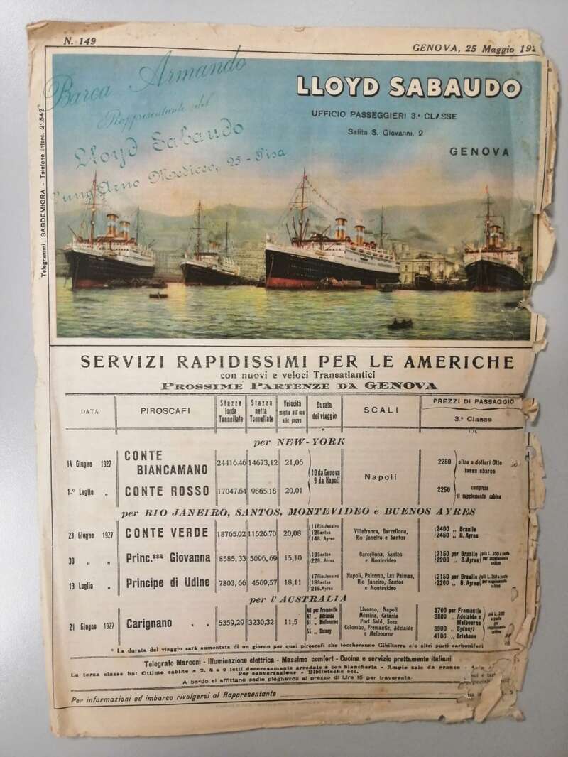 Il 14 Giugno la nave Conte Biancamano salpò dal porto di Genova. La nave era grande. Il bianco e il blu dello scafo richiamavano i colori del cielo e del mare.
