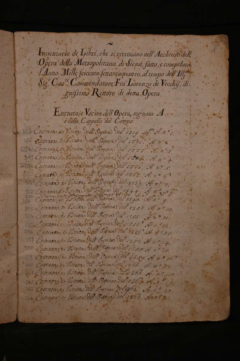 L’Opera della Metropolitana di Siena è una delle più antiche istituzioni italiane, documentata fin dal 1190. L’amministrazione dell’ente era affidata ad un Operaio, un gruppo di consiglieri e uno scrittore, o Camarlengo, con compiti di registrazione contabile. A metà del sec. XVI la sua struttura e le sue funzioni subirono profonde modifiche: l’Operaio fu sostituito da un Rettore, eletto dalle massime istituzioni cittadine, e un consiglio di nove Savi; questo ordinamento perdurò per tutta l’età moderna sebbene la nomina del Rettore divenne prerogativa del Granduca di Toscana. Negli ultimi decenni del sec. XVIII i granduchi modificarono più volte l’assetto dell’Opera finché nel 1790 venne soppresso l’ufficio dei Savi ed affidata al Rettore ogni responsabilità amministrativa, in collaborazione con un bilanciere per la cura degli affari contabili e di un cancelliere per l’esecuzione di ogni incombenza burocratica. Dopo l’Unità d’Italia l’Opera fu sottoposta come tutte le altre Fabbricerie alla legislazione dello Stato unitario.