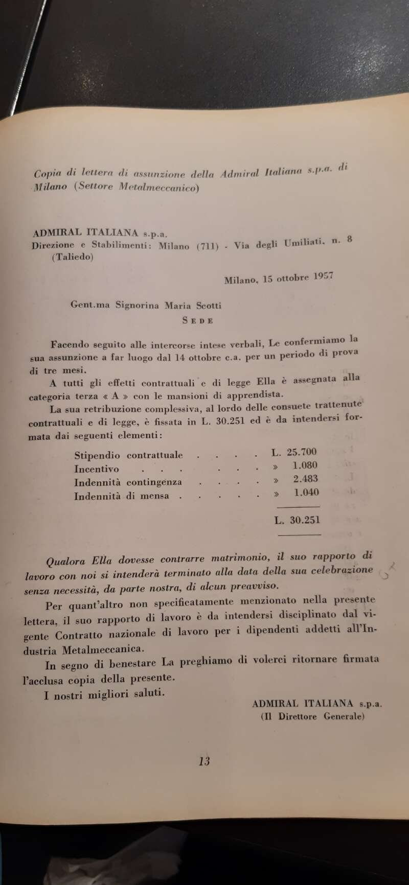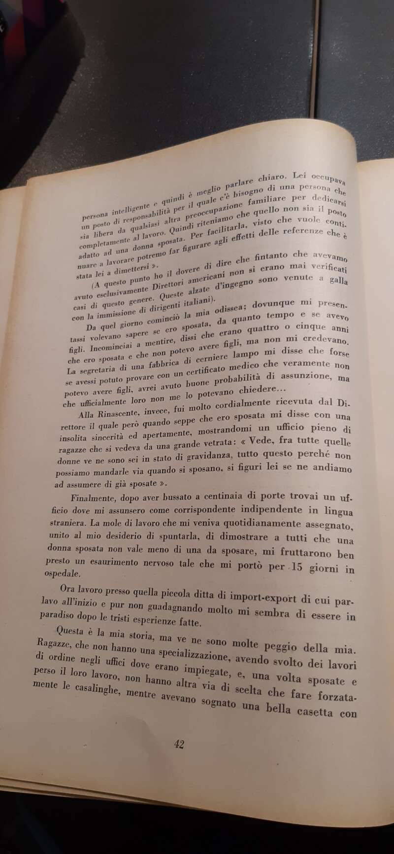 Siamo prima del 1963 e le lavoratrici che contraevano matrimonio venivano immediatamente licenziate.