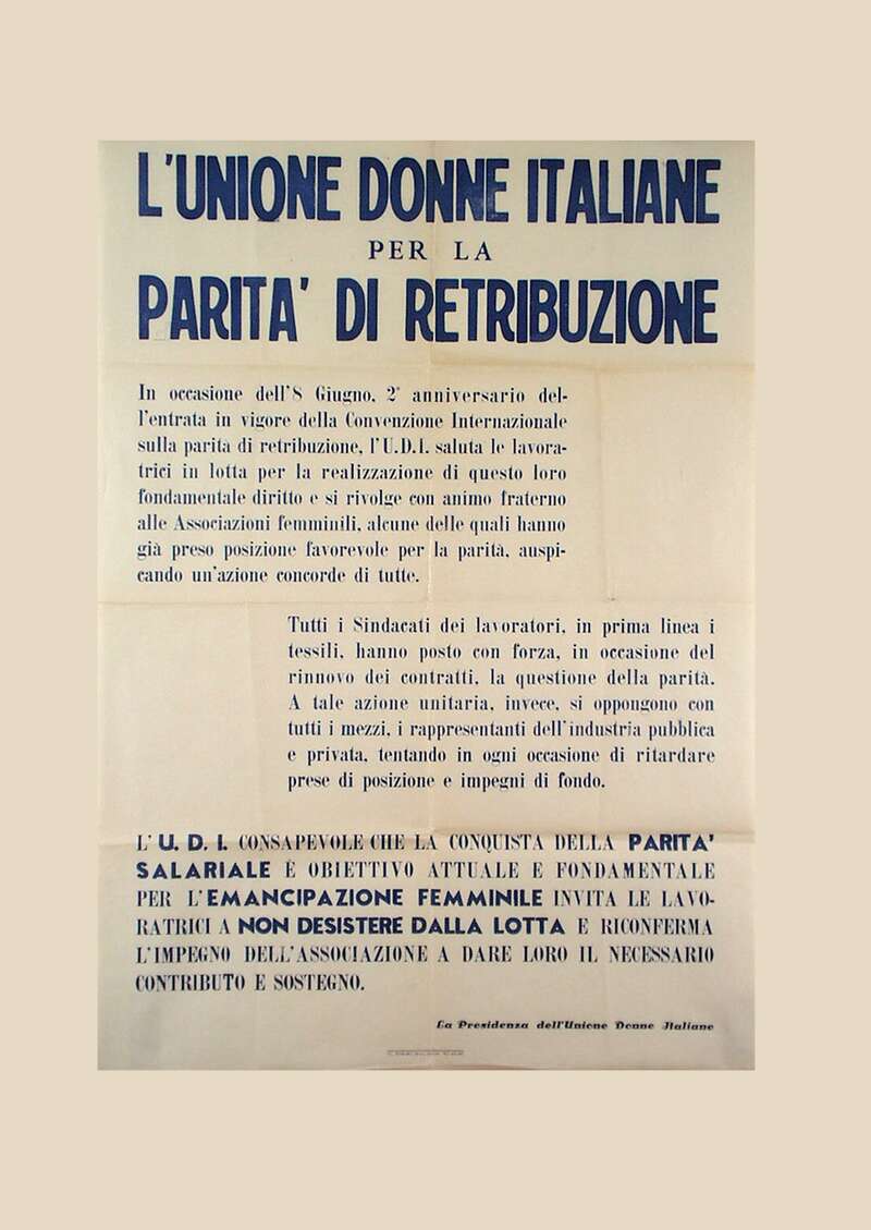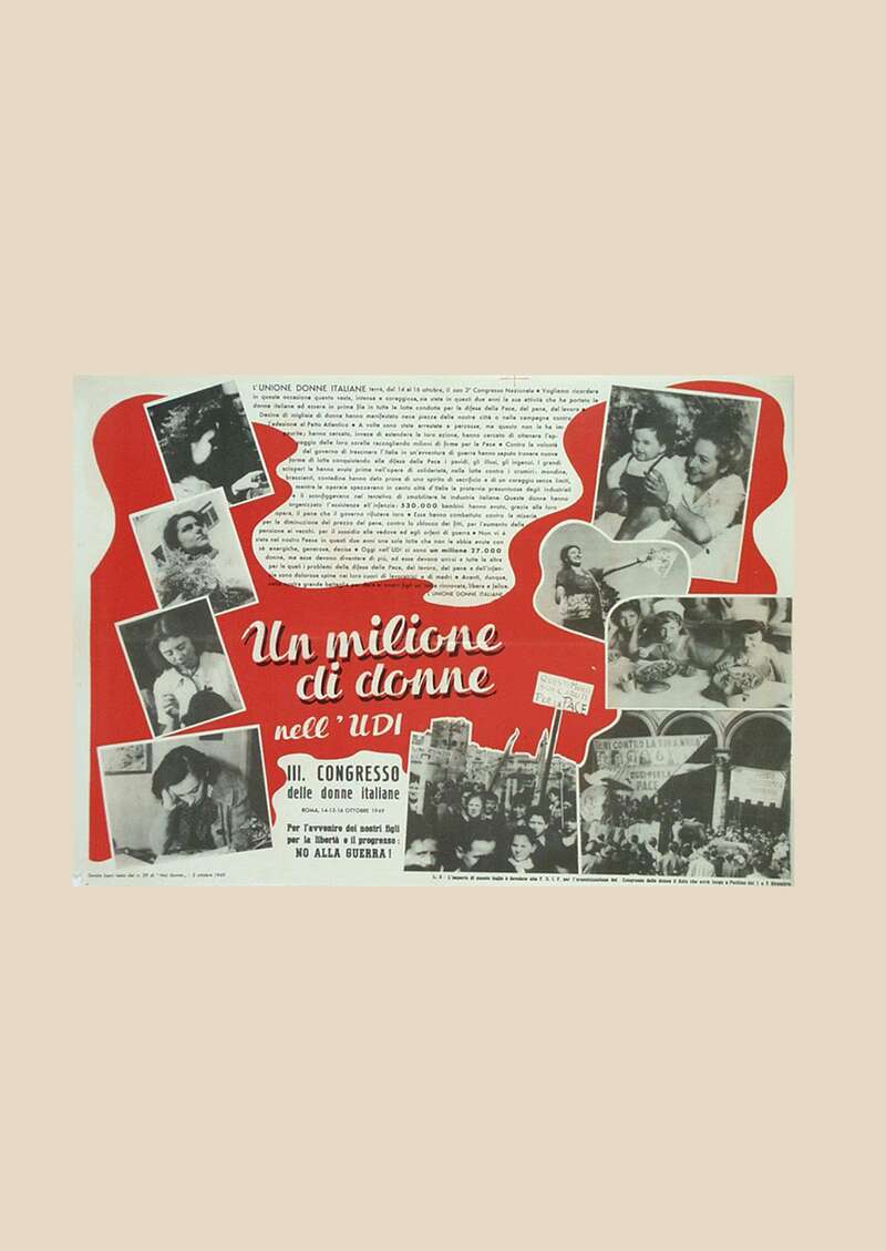 Una storia illuminata da milioni di donne — alcune celebri, come Rita Montagnana, Ada Gobetti, Lina Merlin —e che abbiamo ripercorso attraverso i suoi manifesti, slogan di lotta che raccontano anni di battaglie, un linguaggio sempre chiaro e a volte anche poetico.
