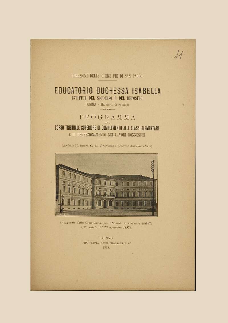 L’Ottocento vede emergere sempre più l’idea che anche alla donna spettino diritti politici e civili: nel 1853, quando l’amministrazione dell’Istituto passò alle Opere Pie di San Paolo, il Soccorso e il Deposito erano ormai veri e propri istituti educativi dedicati alle ragazze. Un anno dopo, nel 1893, l’Educatorio si trasferì dalla sede di via Maria Vittoria in Barriera di Francia, nell’attuale piazza Bernini.