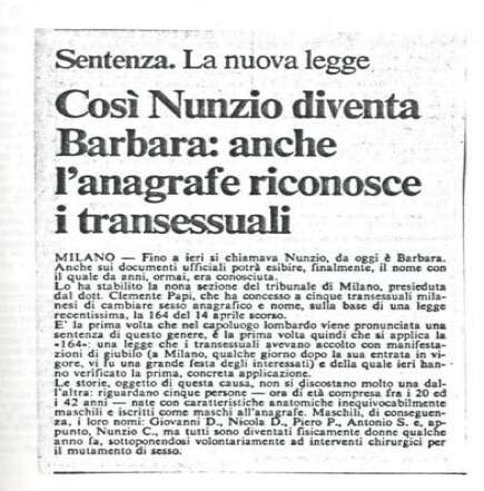 Cathy La Torre racconta il percorso dei diritti trans in Italia attraverso documenti dagli archivi Centro di Documentazione Cassero LGBTI Center e MIT - Movimento Identità Trans di Bologna (https://mit-italia.it/)