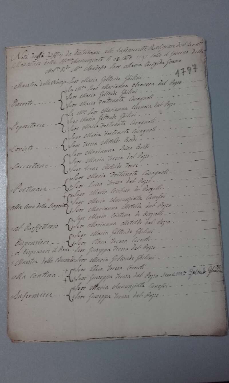 tra l’altro una interessante Nota degli uffici da distribuirsi tra le monache (doc. n. 5 – foto n. 3). Nel