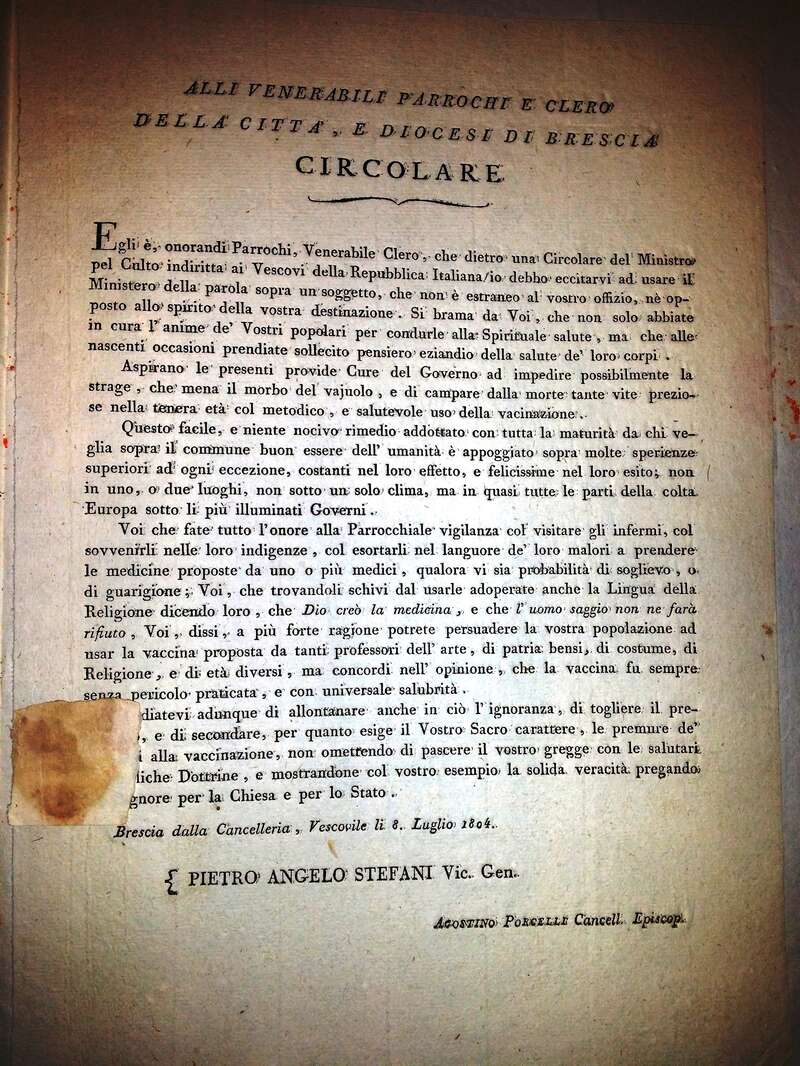 Brescia, 1804 luglio 8. Circolare del vescovo Gabrio Maria Nava a parroci e fedeli