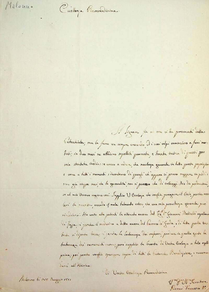 La gente moriva di fame…il vescovo Nava continuamente aggiornato dai parroci sulla situazione inviava ingenti soccorsi.
