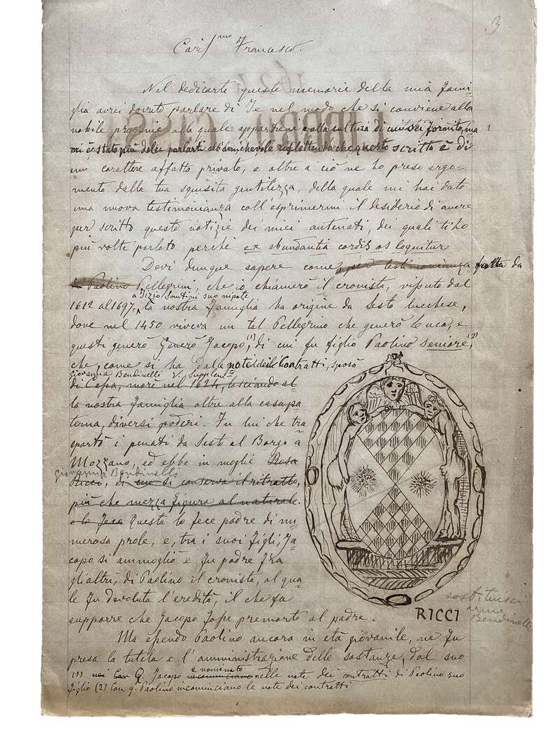 Per la Notte degli archivi il comune di Borgo a Mozzano e la società Innovative Multiservice S.r.l.s. presentano il Fondo Pellegrini conservato presso l'Archivio Storico comunale dell'ente. La Dott.ssa Federica Polito coordinatrice dei servizi della Biblioteca F.lli Pellegrini per la medesima società ci accompagnerà tra le scritture di questa storica famiglia grazie ad una interessantissima intervista all'Ing. Enrico Marchi ultima generazione vivente della stessa nella speranza di interessare le nuove generazioni ed attirare l'attenzione sulla valorizzazione delle proprie radici.