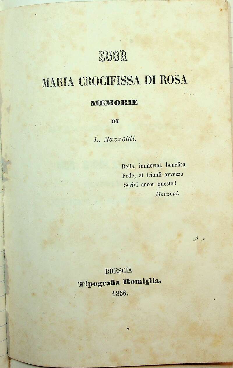 Santa Maria Crocifissa Di Rosa (1813-1855), al secolo Paola di Rosa, vede nascere la sua vocazione proprio durante il colera del 1836 a Brescia.