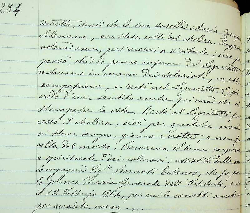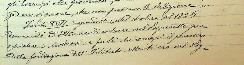 Paola “restò nel Lazzaretto… finché cessò il colera, cioè per qualche mese: vi stava, dunque, giorno e notte e non fu colta dal morbo” dichiara nel 1894 Paola Luigia Tedeschi, allora Superiora generale delle Ancelle della Carità, nel Processo Informativo Super Fama Sanctitatis Vitae della futura santa.