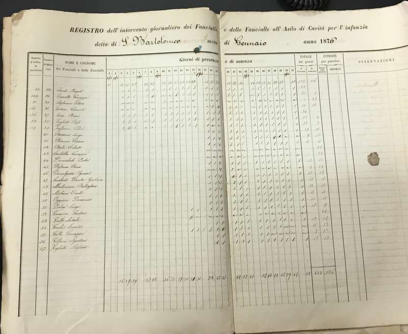 L'archivio degli Asili di carità di Pavia racconta la storia degli asili e rivela aspetti della comunità e della realtà nella quale essi operarono. Negli asili generazioni di bambini trovarono ospitalità; le madri lavoratrici vi lasciavano al mattino i loro figli per riprenderli la sera. Qui i piccini passavano le giornate giocando ed imparando le preghiere, la disciplina scolastica e pratiche d'igiene. L'intento degli asili era quello di garantire una base comune di educazione morale e fisica a tutti i fanciulli in modo da formare una popolazione unita, consapevole ed istruita.