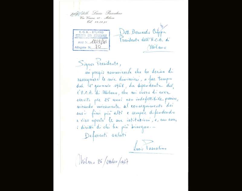 Altre preziose testimonianze ci vengono dalle interviste al direttore dell’Istituto, Lucio Pascalino, e all’allievo Raul Lentini, che insieme ad altre fanno oggi parte del significativo patrimonio di storia orale conservato presso l’archivio storico dell’Asp Golgi-Redaelli, erede della Congregazione di carità e poi dell’Ente comunale di assistenza di Milano.
