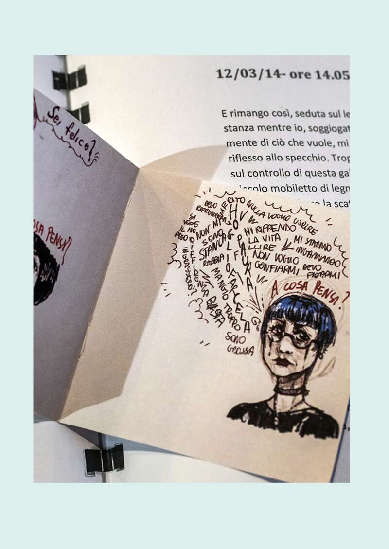 E così scopriamo insieme a lei il diario della Prima Guerra Mondiale tenuto da sottotenente Giuseppe Salvemini, nato nel 1897 a Castiglion Fiorentino in provincia di Arezzo — che all’epoca del conflitto è poco più che maggiorenne; e quello di Caterina Minni, datato 2014, studentesse di Perugia quindicenne che affida alla pagina scritta le inquietudini dell’uscita dall’anoressia che l’ha colpita appena dodicenne.