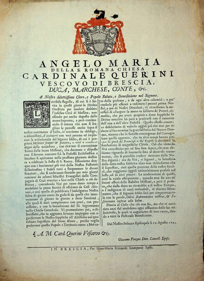 Correva l’anno 1831: il colera, seppur entrato in Europa, non si era ancora affacciato a Brescia dove arriverà solo nel 1836, dopo essere passato da Bergamo nel 1835…pareva lontano dunque. Ciò nonostante il vescovo Gabrio Maria Nava si prepara a prevenire la malattia senza seminare panico nella popolazione.