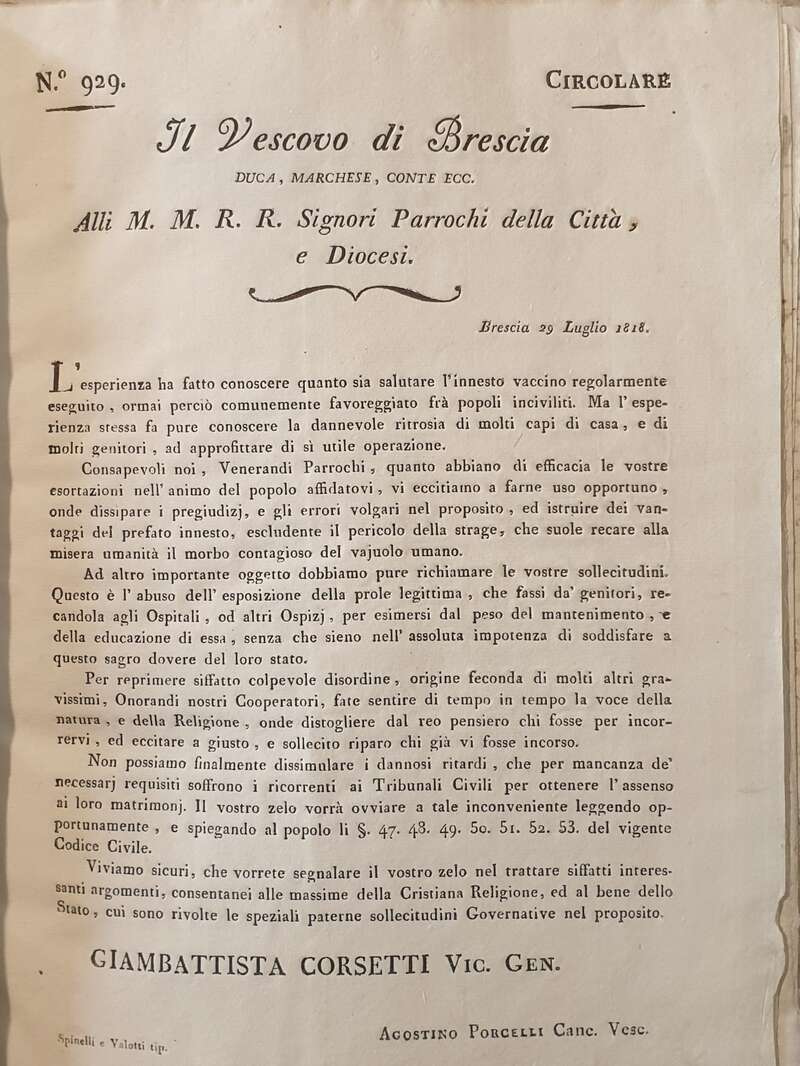 Le autorità civili ed ecclesiastiche emanarono negli anni vari documenti “provax” perché “la vaccinazione fu sempre praticata senza pericolo e con universale salubrità”. Ma la “battaglia” sui vaccini fu lunga…