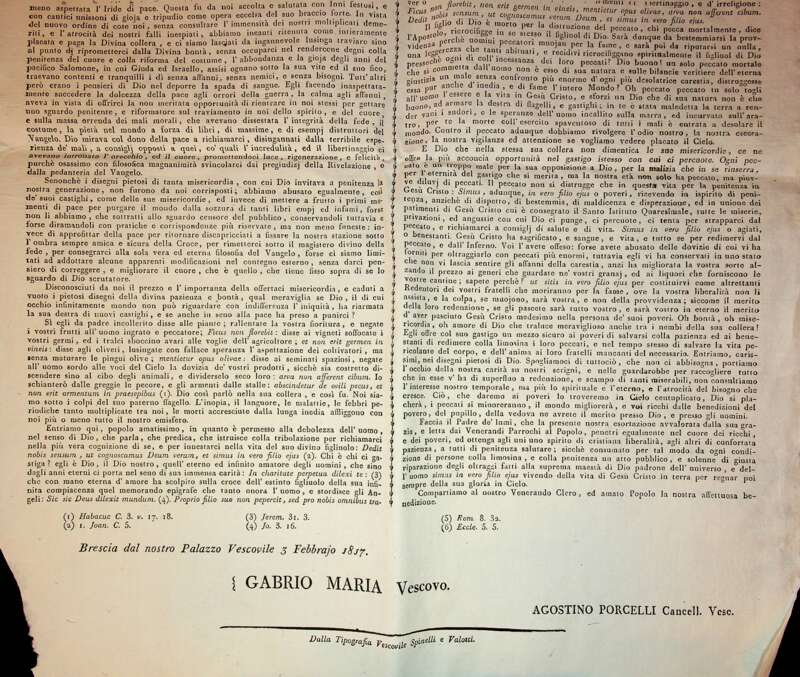 Nel 1816-1817 ci fu nel bresciano una grave carestia, sentita in maniera drammatica soprattutto nelle valli. In quello stesso periodo si scatenò un’epidemia di tifo petecchiale.