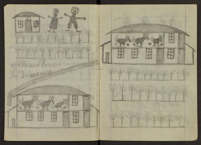 Testi di Mirta Bottai, Cristina Cilli e Gianluigi Mangiapane Voci di Mirta Bottai e Gianluigi Mangiapane Voce di Valeria Tardivo per titolo e citazioni Montaggio audio di Giuseppe Leonetti Didascalie immagini 1_Agostino Cortella: disegni facenti parti di una serie di 48 opere di Agostino Cortella, 1871, Collegno - Regio Manicomio di Torino. IT SMAUT Museo Lombroso 500 2_James Wanamaker: disegni estratti da due album di James Wanamacker, Philadelphia, 1895. IT SMAUT Museo Lombroso 758 3_Andrea Oderda: disegni estratti da due quaderni di Andrea Oderda, 1871-1876, Manicomio di Racconigi (CN). IT SMAUT Museo Lombroso 764 4_George Asner: “Leighting Alpes”, George Asner, 1895. IT SMAUT Museo Lombroso 757 5_Anonimo ML: disegno che ritrae un edificio, forse un bordello, Anonimo. IT SMAUT Museo Lombroso 771 6_Anonimo a colori MAET: disegno a colori realizzato da un autore anonimo, Collegno - Regio Manicomio di Torino. IT SMAUT MAET ArtBrut18 7_Luigi Sopetti 1: disegno a tema rurale estratto da un quaderno di Luigi Sopetti, inizio Novecento, Collegno - Regio Manicomio di Torino. IT SMAUT MAET ArtBrut8 8_Luigi Sopetti 2: disegno con scena di vita domestica estratto da un quaderno di Luigi Sopetti, inizio Novecento, Collegno - Regio Manicomio di Torino. IT SMAUT MAET ArtBrut9 9_Anonimo MAET: un esempio di rebus realizzato da un autore anonimo, 1928, Collegno - Regio Manicomio di Torino. IT SMAUT MAET ArtBrut4 10_Anselme Millet: “Souvenir de Collegno”, Anselme Millet, 1931-1934, Collegno - Regio Manicomio di Torino. IT SMAUT MAET 01.
