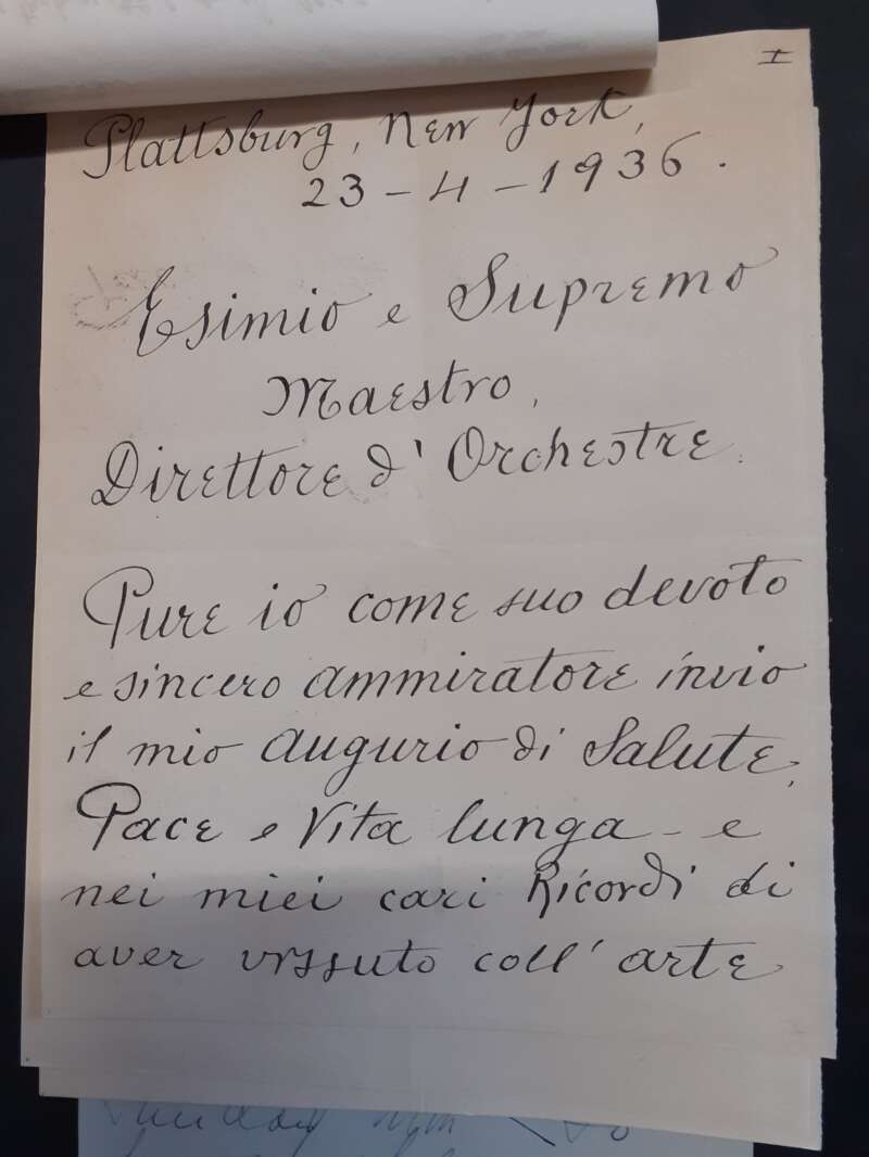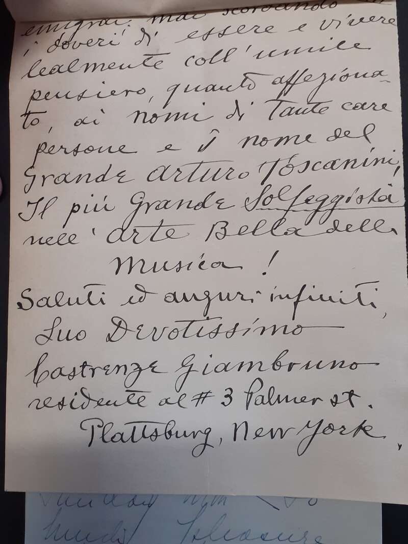Castrenze Giambruno, emigrato in America nei primi anni del '900, scrive la sua lettera a Toscanini in italiano.