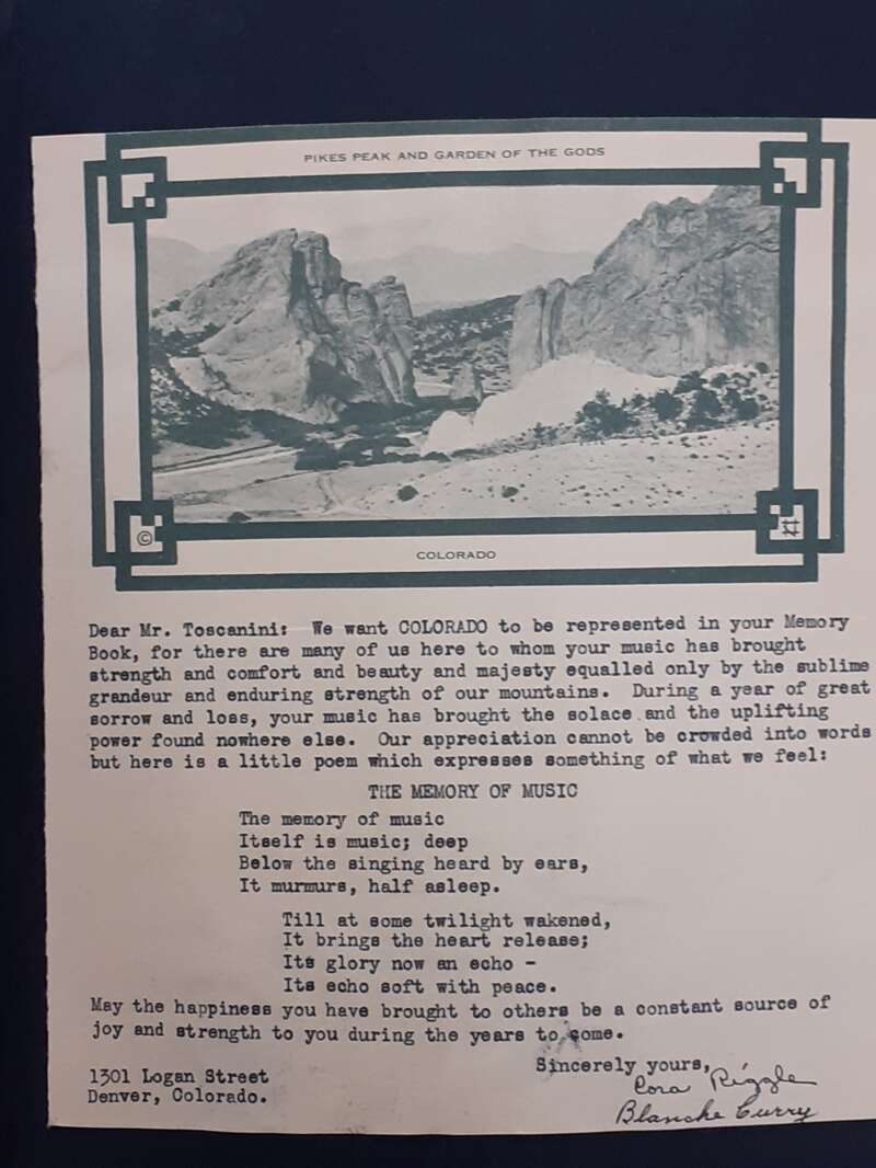 Letters to Toscanini. Lettera di Cora Riggle e Blanche Curry, aprile 1936