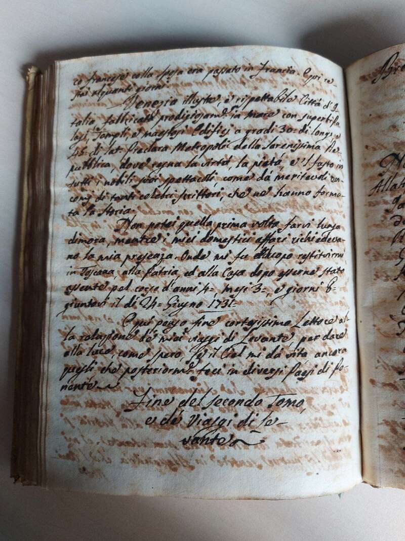 Proporzionalmente però alla grande quantità di dettagli sui luoghi visitati presente nelle carte, mancano le informazioni fondamentali legate al manoscritto: chi ne è l’autore? Quando è stato redatto? È stato pensato per la stampa? Se sì, è mai stato pubblicato? E visto il grande interesse che ha cominciato nel Settecento a diffondersi sui viaggi in Oriente, è realmente un diario di viaggio oppure si tratta di un’opera di narrazione e quindi di un’opera letteraria?