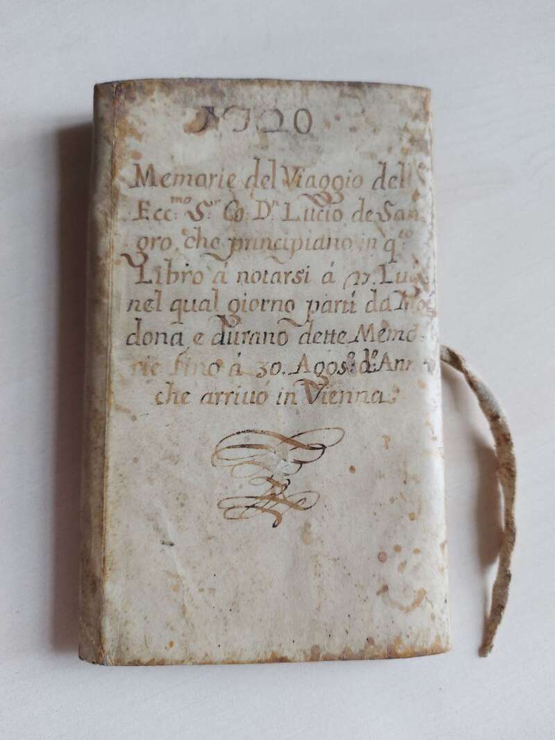 4) XXV.D.20 Memorie del viaggio dell'Ecc. S. Co D. Lucio de Sangro che principiano in questo libro a notarsi a 27 luglio nel qual giorno partì da Modona (sic!) e durano dette memorie fino a 30 agosto d'anno che arrivò in Vienna