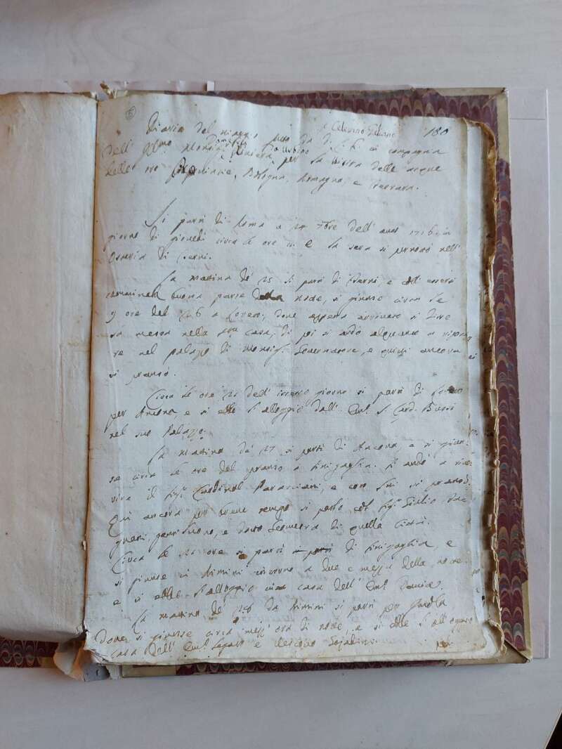 6) XXIX.C.07.05 Diario del viaggio fatto da d. Celestino Galiani in compagnia dell'Ill. monsignor Domenico Riviera da Urbino per la visita delle acque delle tre Provincie, Bologna, Romagna e Ferrara, 24 settembre 1716 - 22 novembre 1716