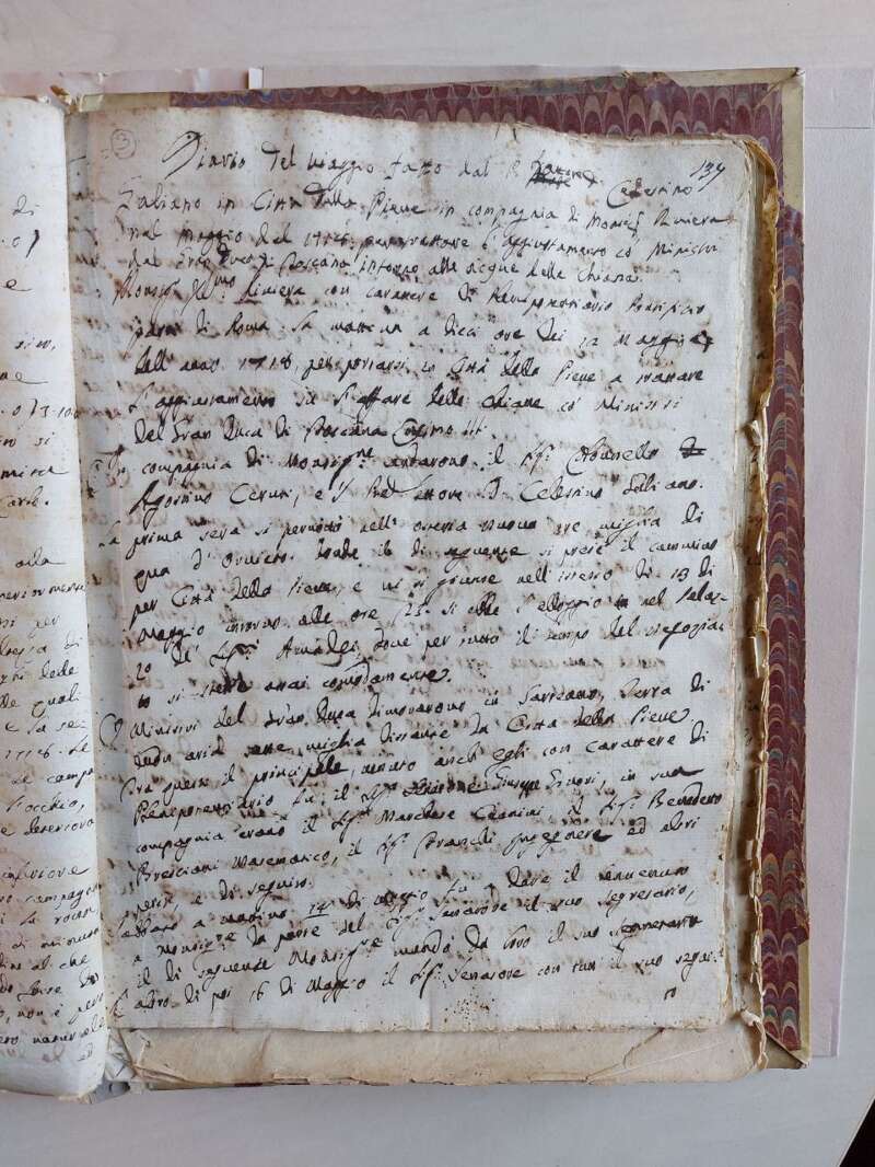 9) XXIX.C.07.03 Diario del viaggio fatto dal P. dottore D. Celestino Galiani in Città della Pieve in compagnia di Monsignor Riviera nel maggio 1718 per trattare l'aggiustamento co' Ministri del Gran Regno di Toscana intorno alle acque della Chiara