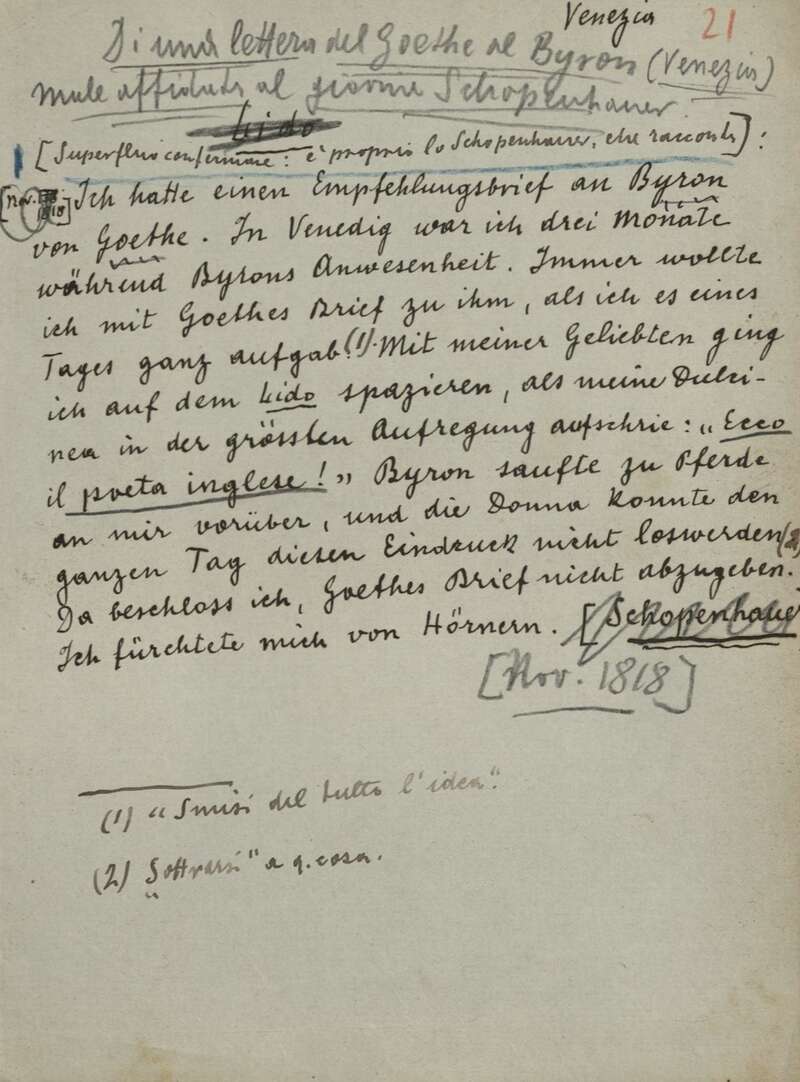 Proponiamo qui l’introduzione che Chiarini aveva previsto al capitolo su Arthur Schopenhauer, corredata da alcuni testi da lui scelti.