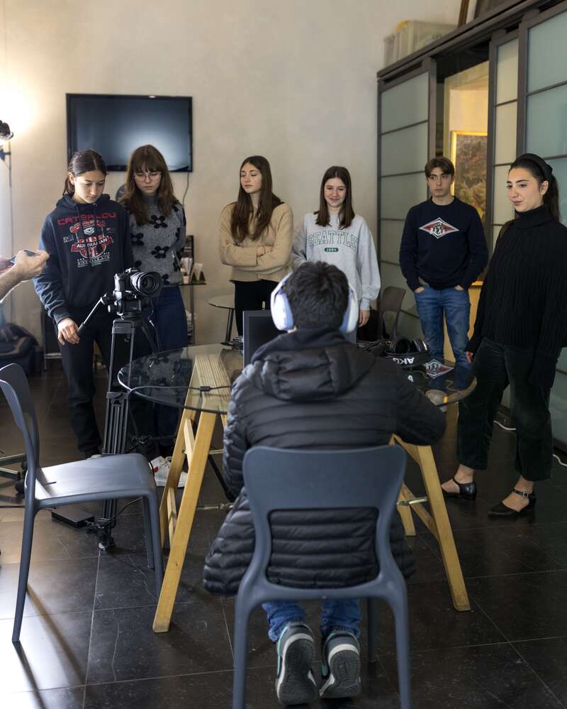 Con i compagni e le compagne del liceo classico Goffredo Mameli, vincitori del contest Archivio del futuro: Angelica Catalano, Matteo Mesolella, Federica Nordio, Francesca Sabbatucci, Lorenzo Spadorcia"