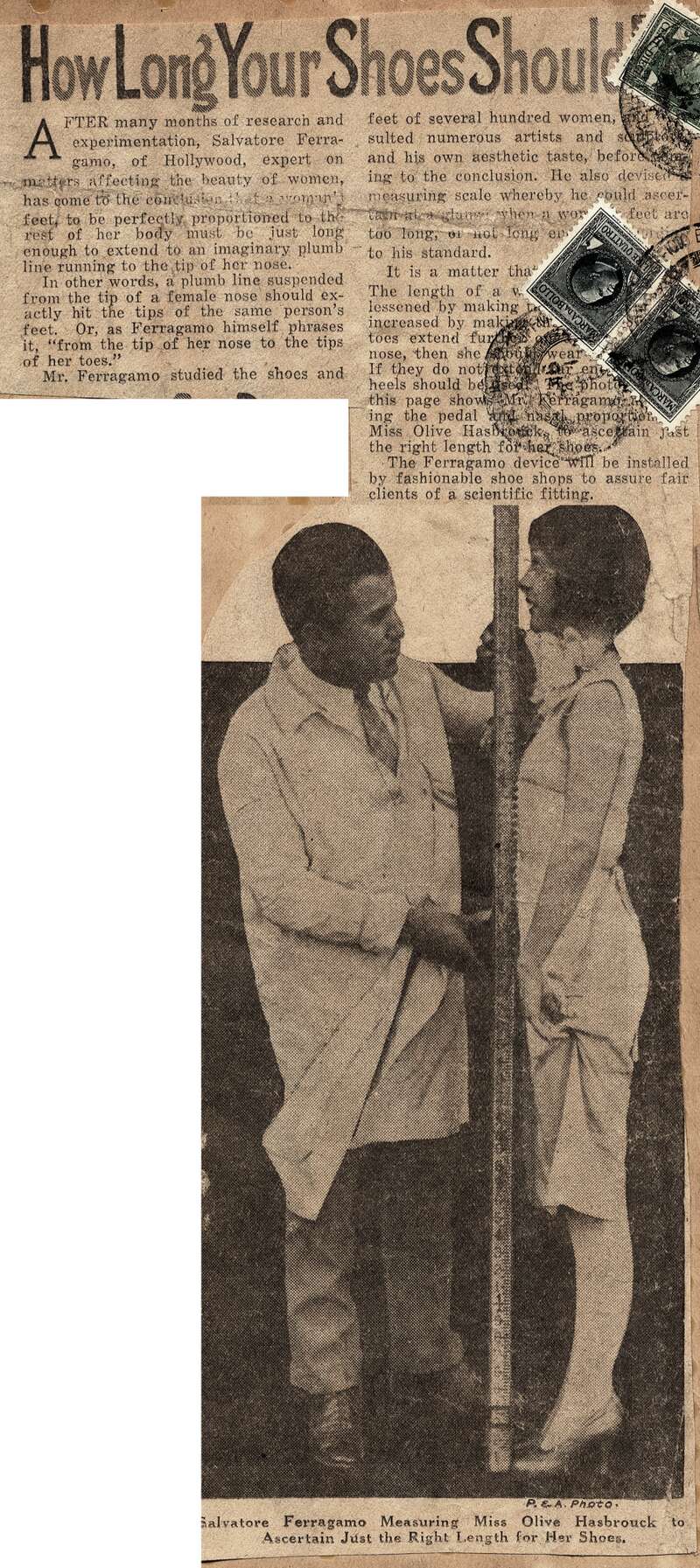verso est, in procinto di attraversare un paese che, ai suoi occhi, è tutto da scoprire: il deserto dell’Arizona, le Montagne Rocciose e gli operai messicani intenti a lavorare sulla ferrovia… Giunto a Santa Barbara, è colpito dalla bellezza del paesaggio che gli ricorda l’Italia, e dalla città, già allora meta turistica, dove da poco sono nati i primi studi cinematografici. Qui, insieme ai fratelli Alfonso, Girolamo e Secondino, apre il primo negozio su suolo americano in Mission Canyon, che poco dopo sposterà in una vecchia costruzione di State Street. Ad introdurlo nel mondo del cinema è il fratello Alfonso, impiegato a stirare gli abiti per l’American Film Manufacturing Company e il cugino Jerry, caratterista nel serial The Diamond from the Sky (1915) per il quale fornirà le prime scarpe. Intanto le attrici del tempo frequentano il negozio e Salvatore inventa per loro modelli e stili che fanno tendenza. È il 1916 quando comincia a seguire, come uditore, le classi serali del corso di anatomia della Extension Division della University of Southern California a Los Angeles per cui percorre quasi 200 miglia al giorno. Alla fine del corso arriva alla risoluzione della calzata perfetta. Scopre che il peso del corpo poggia sull’arco plantare: nella calzoleria tradizionale le scarpe erano realizzate dando supporto alla nocca e al tallone, non risolvendo il problema della comodità (fig. 3).