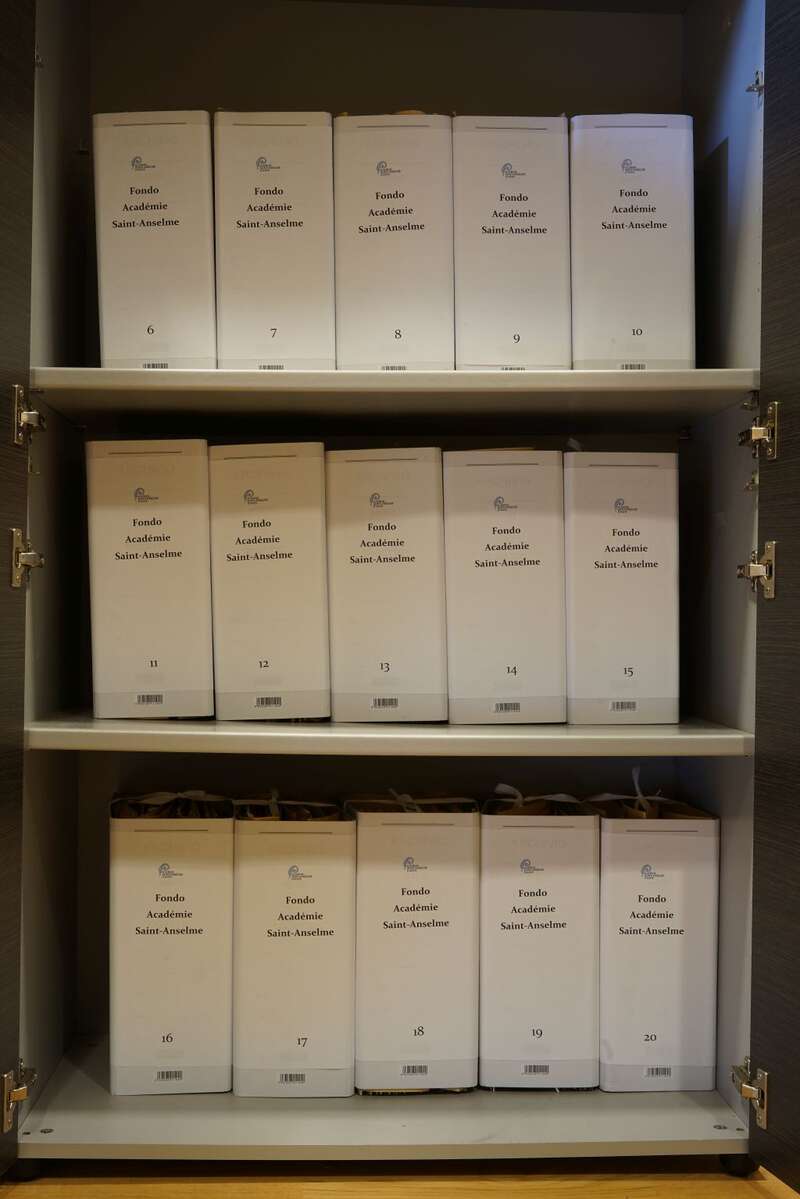 L'archivio dell'Académie Saint-Anselme è suddiviso in due sezioni: la prima, denominata "Académie Saint-Anselme", formata da documentazione prodotta dall'Ente nel corso della sua attività e una seconda formata da fondi donati o acquistati, entrambe conservate nella sede dell'istituzione. La seconda sezione comprende in particolare documentazione prodotta o raccolta da membri dell'Académie quali i religiosi François-Gabriel Frutaz, Maxime Durand, Joseph Lale-Démoz, Dominique Noussan, Édouard Bérard, Joseph-Marie Trèves e dal vicepresidente dell'Académie Ernest Page. Sono presenti un fondo carteggio e uno fotografico, contenenti materiale non riconducibile all'Académie, e una serie di raccolte (cartoline, manoscritti, miscellanea). Il materiale, dal 1260 al XXI secolo, è conservato in 87 faldoni.
