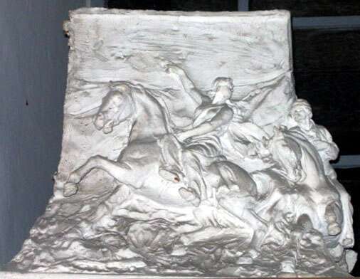 Il monumento è sormontato da un dinamico bronzo in cui la donna è raffigurata a cavallo, con i lunghi capelli sciolti, mentre stringe al seno uno dei suoi figli, il piccolo Menotti, e punta in alto una pistola. Sulla base alcuni rilievi in bronzo rievocano altri episodi della vita di Anita. Di questi rilievi si conservano nella sede del nostro Istituto due grandi modelli in gesso eseguiti da Mario Rutelli, recentemente restaurati, uno con Anita a cavallo alla testa di alcuni garibaldini e l’altro con la donna morente in braccio al marito.
