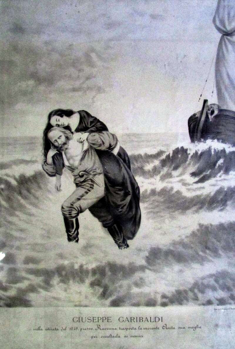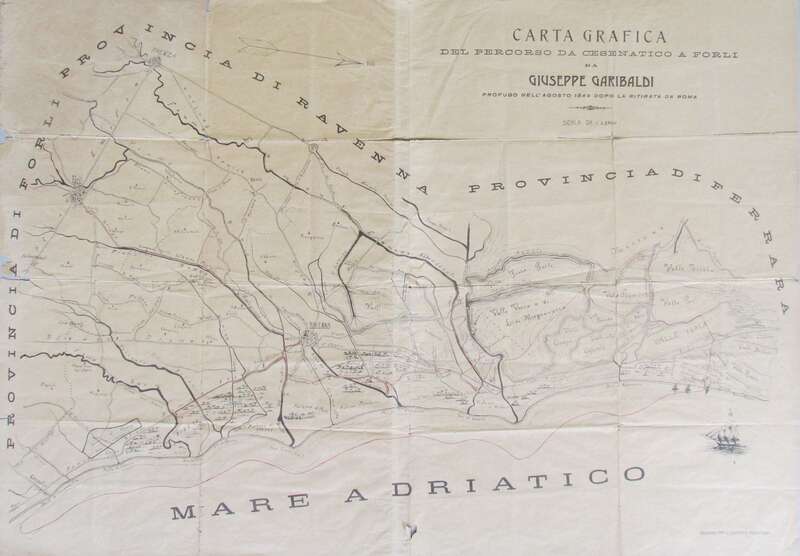 Nel 1847 Anita si imbarcò per l’Italia con i figli Menotti, Teresita e Ricciotti. Il marito la seguì nell'ottobre 1848. Quando Garibaldi si recò alla difesa di Roma, non volle portare con sé la donna per non farle correre troppi pericoli, nonostante le sue proteste. Anita lo raggiunse solo a giugno inoltrato, pochi giorni prima che la Repubblica Romana cadesse. Quando il 2 luglio 1849 Garibaldi abbandonò Roma, Anita era sofferente e al quarto mese di gravidanza. La drammatica ritirata, i pericoli e le privazioni d'ogni genere ne compromisero ulteriormente le condizioni. Nel nostro Archivio si conservano incisioni e dipinti sbiaditi dal tempo che ricordano gli ultimi giorni di Anita. Su una grande mappa si possono ripercorrere le tappe della sua via crucis tra le valli, le colline e le coste di Romagna, con soldati austriaci e gendarmi pontifici alle calcagna, ma con l’aiuto di una popolazione generosa e piena di coraggio, fino a quel 4 agosto del 1849 in cui fu portata, allo stremo delle forze, nella fattoria Guiccioli, nei pressi di Ravenna, dove spirò.