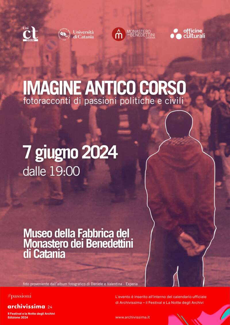 Venerdì 7 giugno dalle ore 19:00, in occasione della Notte degli Archivi ‘24, negli spazi del Museo della Fabbrica del Monastero dei Benedettini di Catania si terrà “Imagine Antico Corso: fotoracconti di passioni politiche e civili”, la mostra dedicata ai materiali fotografici presenti all’interno dell’Archivio del Museo della Fabbrica e quelli provenienti dagli archivi personali degli intervistati e delle intervistate che, grazie alle loro preziose testimonianze, racconteranno la loro esperienza sociale e politica all’interno quartiere. La mostra si inserisce all’interno di un più ampio progetto di ampliamento dell’Archivio del Museo della Fabbrica con l’aggiunta di un’intera sezione dedicata all’Antico Corso, che vedrà la digitalizzazione delle fotografie, dei racconti e delle testimonianze di chi ha vissuto e vive ancora oggi il quartiere.